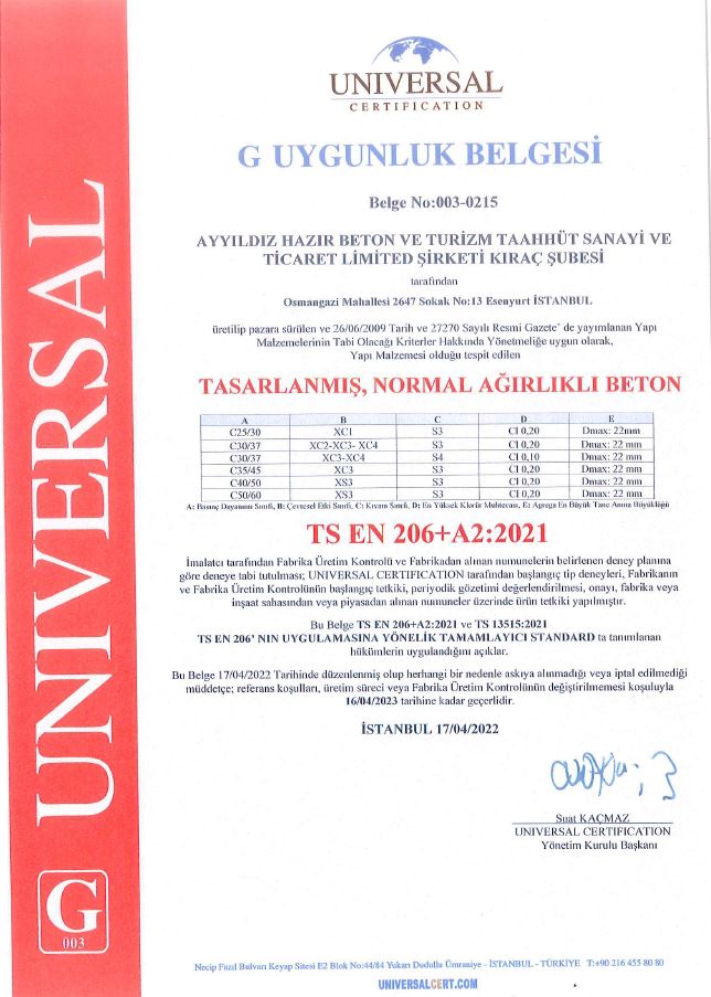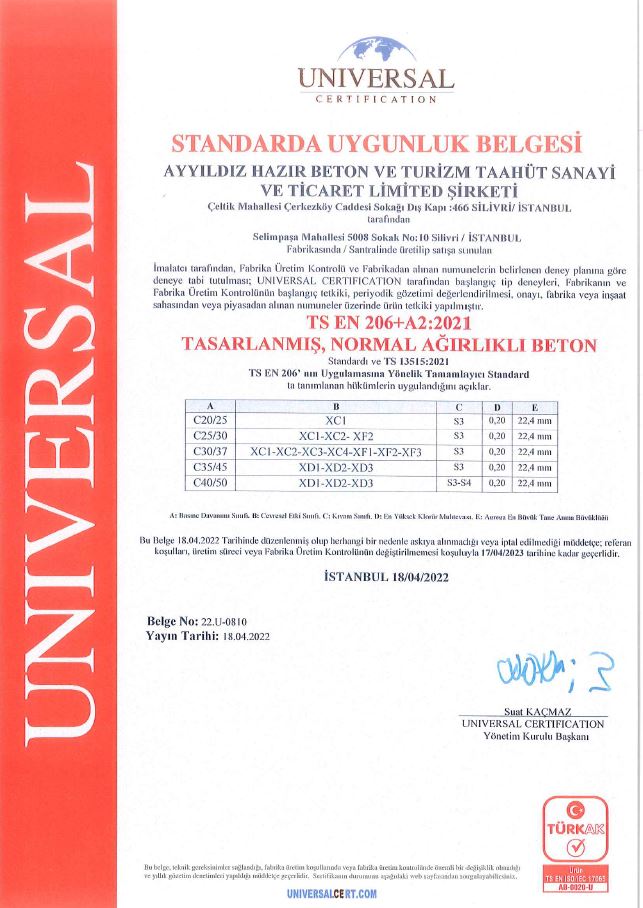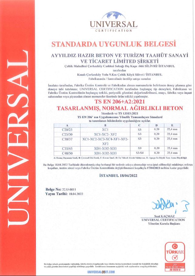Ayyıldız Hazır Beton Kalite Laboratuvarımız gün içinde yapılan sevkiyatları takip ederek standartlar dahilinden umuneler alıp, kırımlar yapar ve alınan sonuçları raporlar halinde dökümante ederek arşivler ve ilgili raporları müşterilerine sunar.